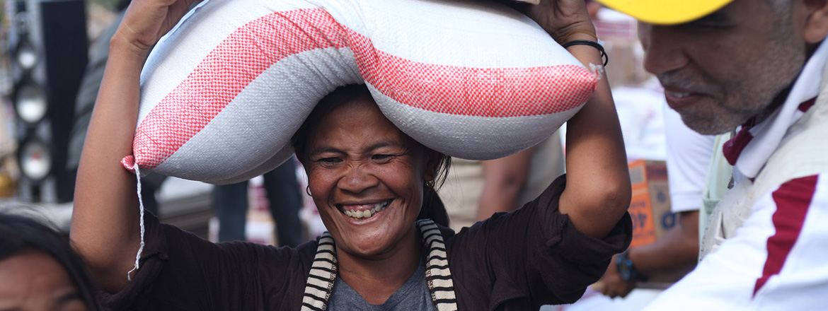 The distribution of the aid was made in the village of Sugian and surrounding area located in the eastern part of Lombok Island. The aid included basic food items for about one month and 15 pieces of clothes to cover the needs of all members of the family